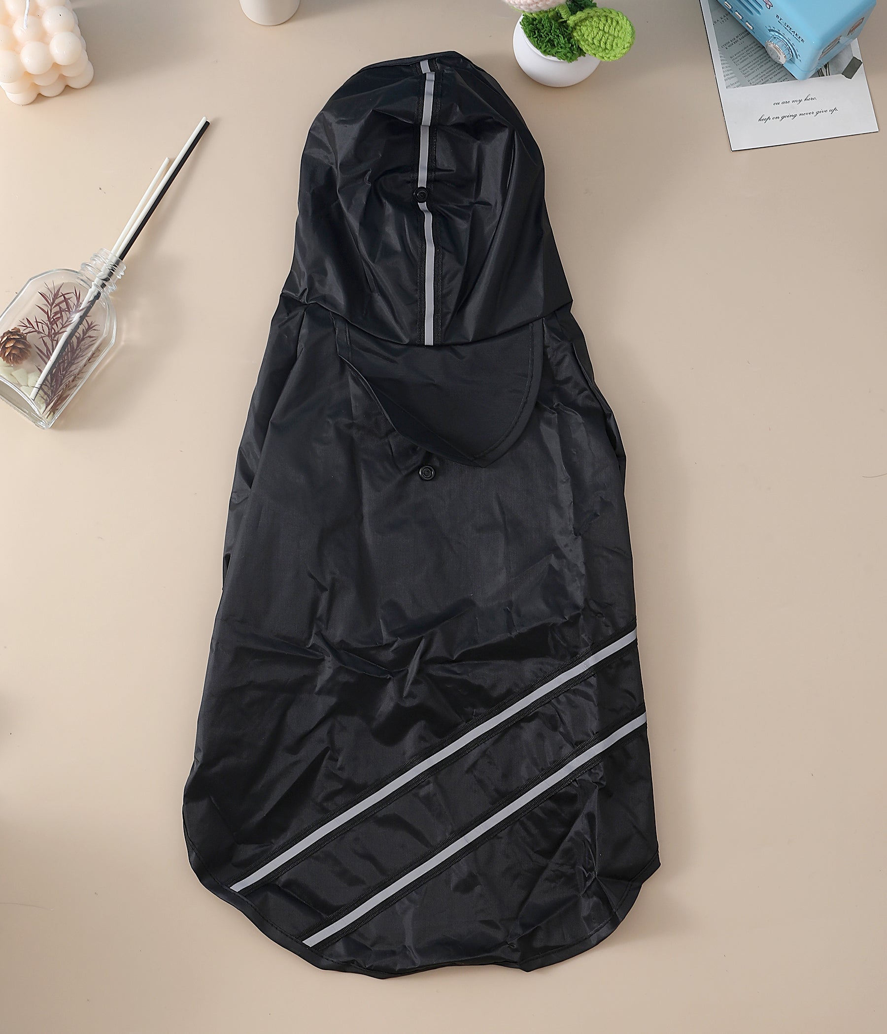 Realizzato in materiale impermeabile di alta qualità, la nostra giacca per cani è perfetta per proteggere il tuo amico a quattro zampe durante le giornate di pioggia. Disponibile in diverse taglie per adattarsi a ogni razza, rende le passeggiate sotto la pioggia un'esperienza più piacevole e sicura per il tuo cane.
