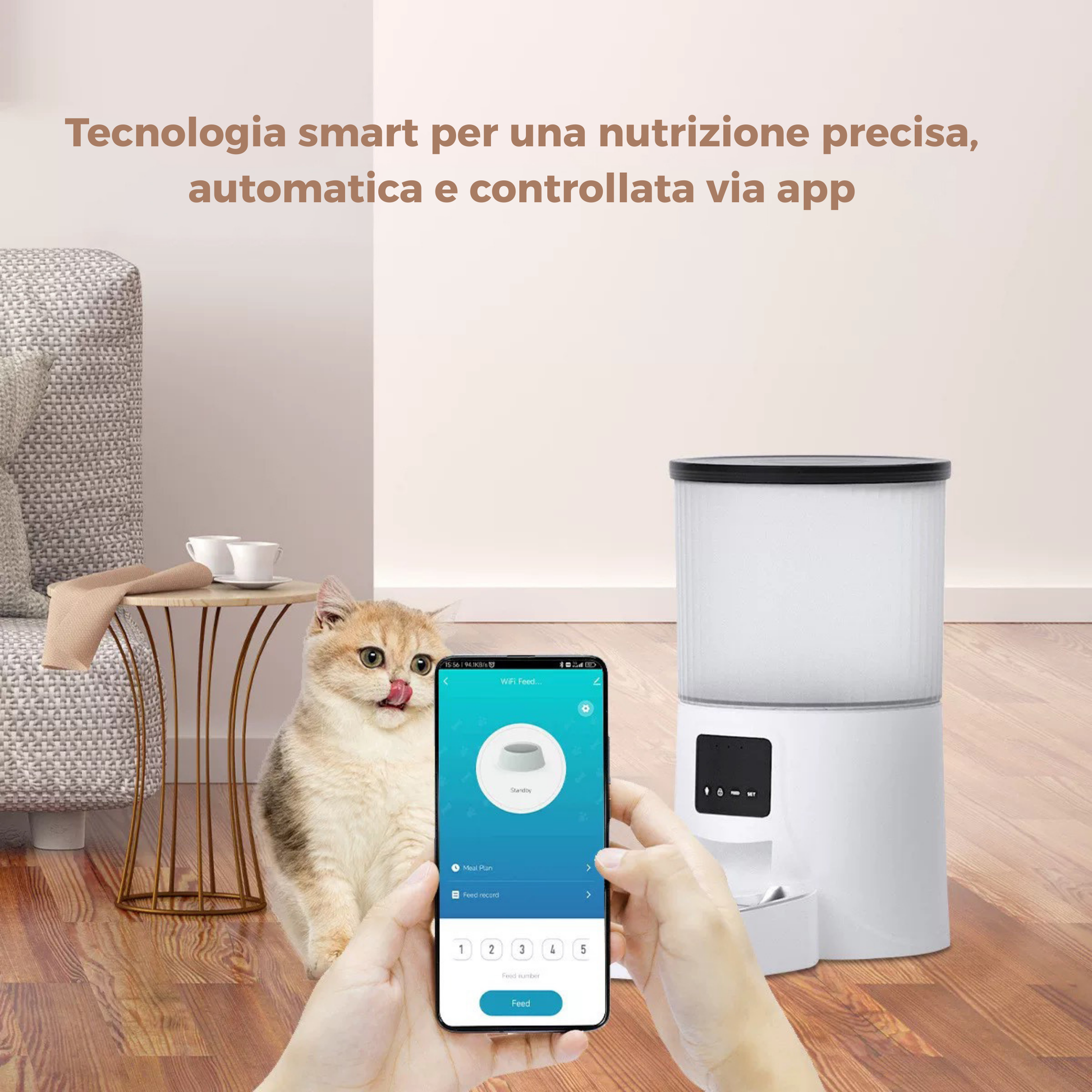 Il Set Distribuitore Automatico di Cibo è la soluzione perfetta per nutrire i tuoi animali domestici. Con l'opzione disponibile sia singola che doppia ciotola in acciaio, è facile da lavare e pulire, garantendo igiene e una corretta alimentazione. Grazie al controllo a distanza Wi-Fi e il video, puoi monitorare e gestire l'alimentazione di più cani e gatti in casa.
